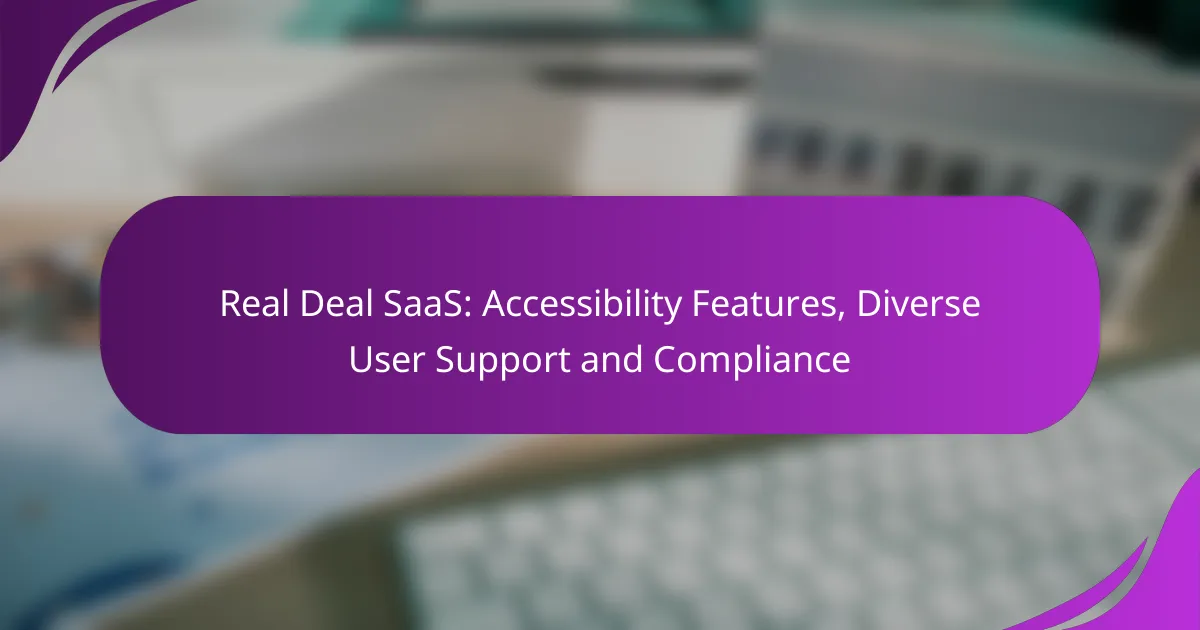 Real Deal SaaS platforms prioritize accessibility by integrating key features that enhance usability for individuals with disabilities, ensuring inclusivity for all users. By offering multi-language options, customizable interfaces, and support for assistive technologies, these tools cater to diverse user needs. Compliance with standards such as WCAG 2.1, ADA, and Section 508 further reinforces their commitment to accessibility and user support.